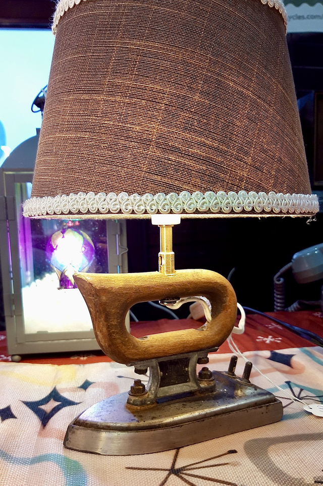 Le vieux fer, massif et indestructible, devient le socle inattendu d’une lampe chaleureuse et raffinée.