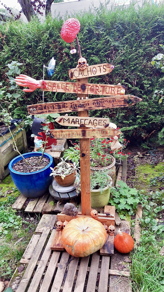 Fabriqué à partir de bois de récupération, décoré de vieilles décorations recyclées, il incarne à la perfection l’esprit d’Halloween : celui où chaque objet a une seconde vie… ou une seconde mort.