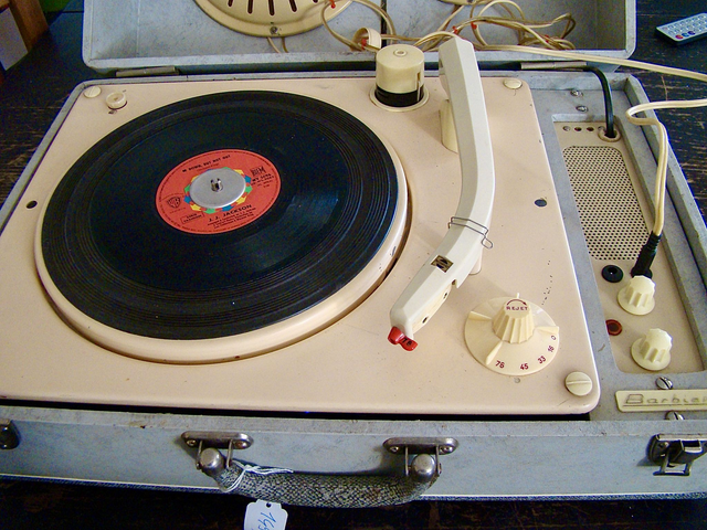 Grâce à son sélecteur de vitesses (16, 33, 45 et 78 tours), ce Barbieri lit tous vos vinyles, du microsillon au 78 tours en Bakélite.